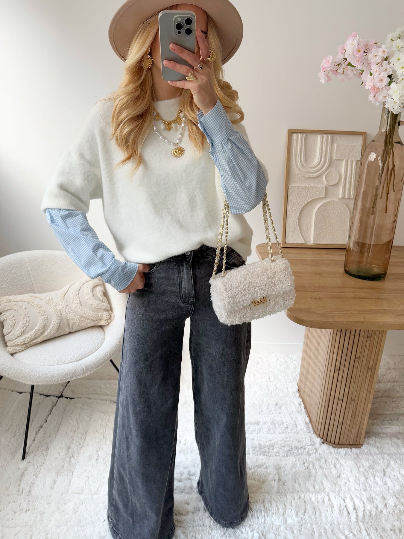 LUCERA ecru 2-in-1 shirt-sleeve sweater